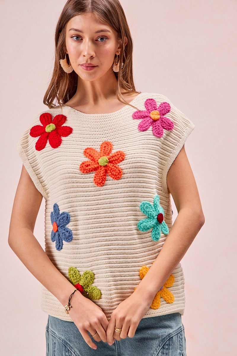 CROCHET FLOWER EMBROIDERY SLEEVELESS KNIT SUMMER TOP